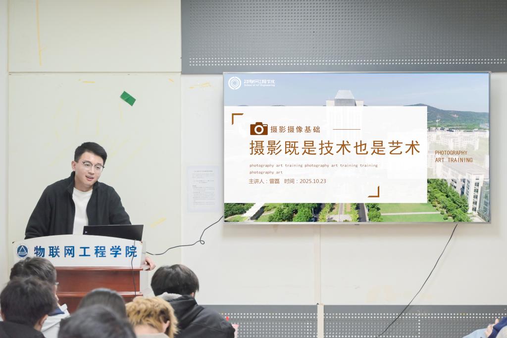 摄影摄像基础培训环节。曾磊从摄影摄像工具特性差异入手,简要介绍设备选择要点。随后,他围绕景别、构图、曝光等摄影摄像核心要素,并结合丰富的实践经验,深入剖析了“活动摄影”和“会议摄像”的拍摄准备、时机把握、拍摄技巧和注意事项等,使同学们对摄影摄像应用与实践有了更深入的认识,助力同学们提升视觉内容制作能力。