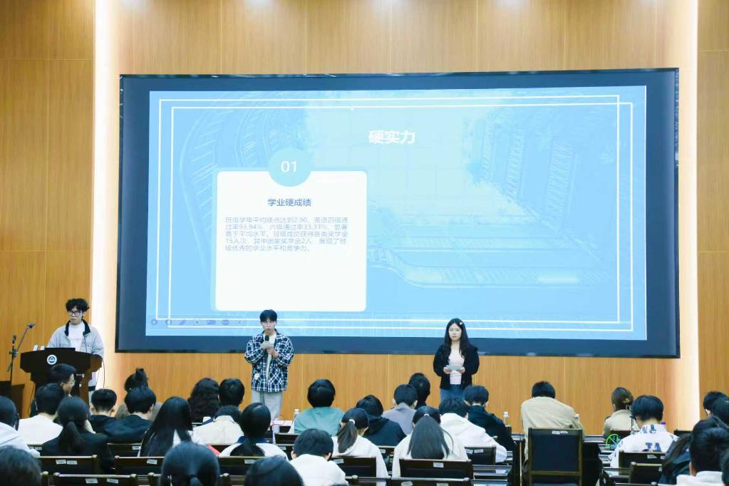 活动中,各参赛班级按照抽签顺序依次登台展示,以PPT汇报、才艺展示、舞台表演等多样化形式,全方位呈现班级建设的亮眼成果。各班用详实数据与鲜活案例,清晰展现班风建设的扎实举措与思想引领的显著成效:自动化2204班重点分享学风建设经验,详述班级在科研竞赛中的突破与多名学生保研至顶尖高校的成果,尽显专业硬实力;电气2302班则围绕“雷锋特称团支部”建设,介绍如何将志愿服务与专业学习深度融合,凸显独特班级特色;物联网2303班以合唱、诗歌朗诵等温情节目,生动传递出“生活中互帮互助、学习上协同奋进”的融洽氛围;自动化2206班则以创意舞台表演的形式,将团支部开展优秀社会实践的经历及班级成员并肩参与科创竞赛的场景搬上舞台,充分展现出物联学子昂扬向上的青春风采。各班不仅全面展现了在科创竞赛、社会实践等领域的优异成绩,更生动呈现出团结协作的良好班风,彰显了物联学子昂扬向上的青春姿态。