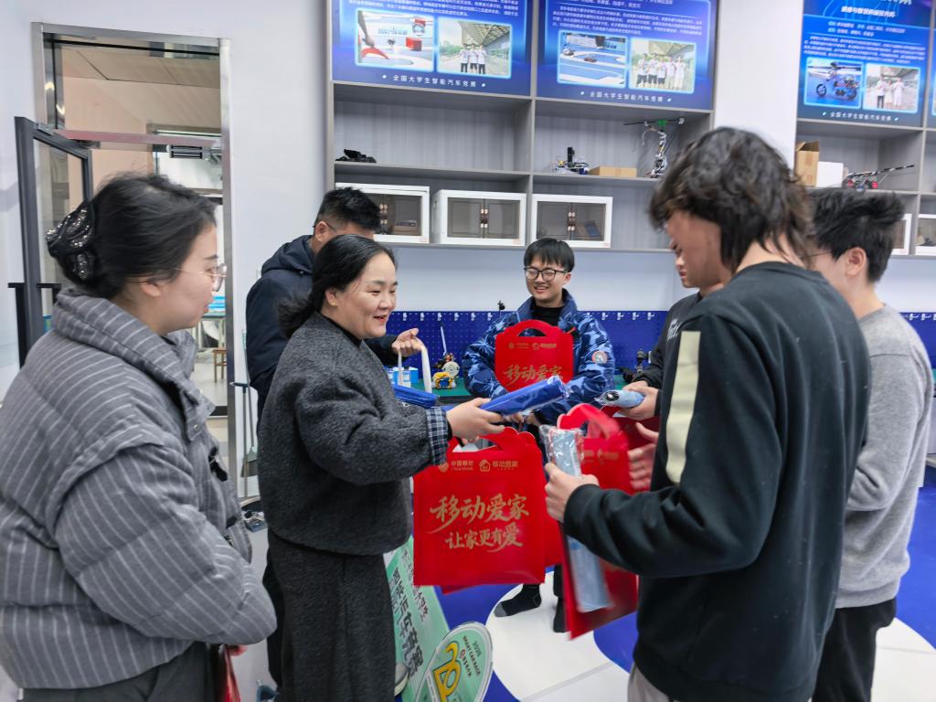 在大学生创新实践基地,慰问团队先后走访电子设计、机器人、智能车等科创俱乐部,与备赛学子深入交流,现场观摩竞赛作品调试过程。杨艳对同学们寒假里潜心备赛的奋进姿态给予充分肯定,鼓励大家进一步夯实理论根基、锤炼实践操作本领、提升综合素养,以过硬的专业能力在赛事中奋勇争先、斩获佳绩,同时叮嘱大家规范操作各类器材,自觉遵守实践基地安全管理要求。