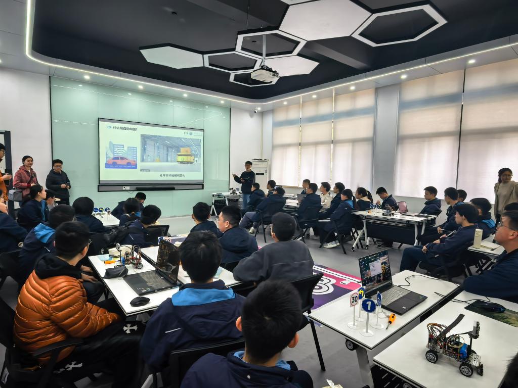 同学们纷纷驻足观察,认真聆听志愿者讲解,不时围绕研发原理、应用场景等问题积极提问,部分同学还亲手参与了互动体验。在看、听、问、做的沉浸式体验中,大家真切感受着智能科技的神奇与力量。