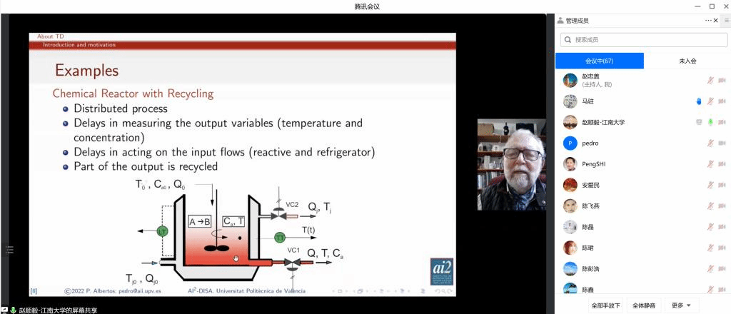 控制学科的支持和帮助。随后,大连理工大学赵珺教授,华东理工大学钟伟民教授,中南大学王雅琳教授,东北大学付俊教授,IEEE Transactions on Cybernetics主编、澳大利亚Adelaide大学石碰教授,Control Engineering Practice主编、加拿大Alberta大学的黄彪教授,实时控制领域专家、IFAC(国际自动控制联合会)前任主席西班牙瓦伦西亚理工大学的Pedro Albertos教授,Sustainable and Resilient Infrastructure主编、美国伊利诺伊大学厄巴纳-香槟分校Paolo Gardoni教授等分别带来了精彩的报告。