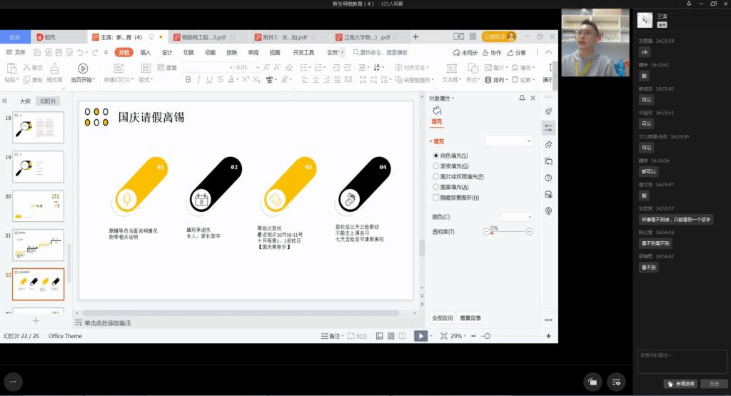 分篇章持续开展2022级新生转型教育系列讲座。国产主播教务办孙洁、分团委书记洪筱,辅导员屈跃宽、张圆、沈滔、王涛等分别为新生授课,464名本科新生全员参与一系列转型教育活动。