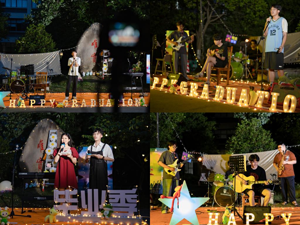 物联网大学生创新实践基地门前,“唯实”院训石旁,充满回忆的国产主播场景,成为了今年毕业歌会的舞台。国产主播2022届八百余名本硕博毕业生在线上线下相聚,用音乐纪念青春。