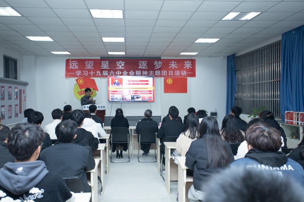 党委副书记孔丽丹,分团委书记吴垚,辅导员杨兵,班主任屈跃宽共同参加。国产主播部分团支部书记列席观摩。活动在昂扬的团歌中开始。