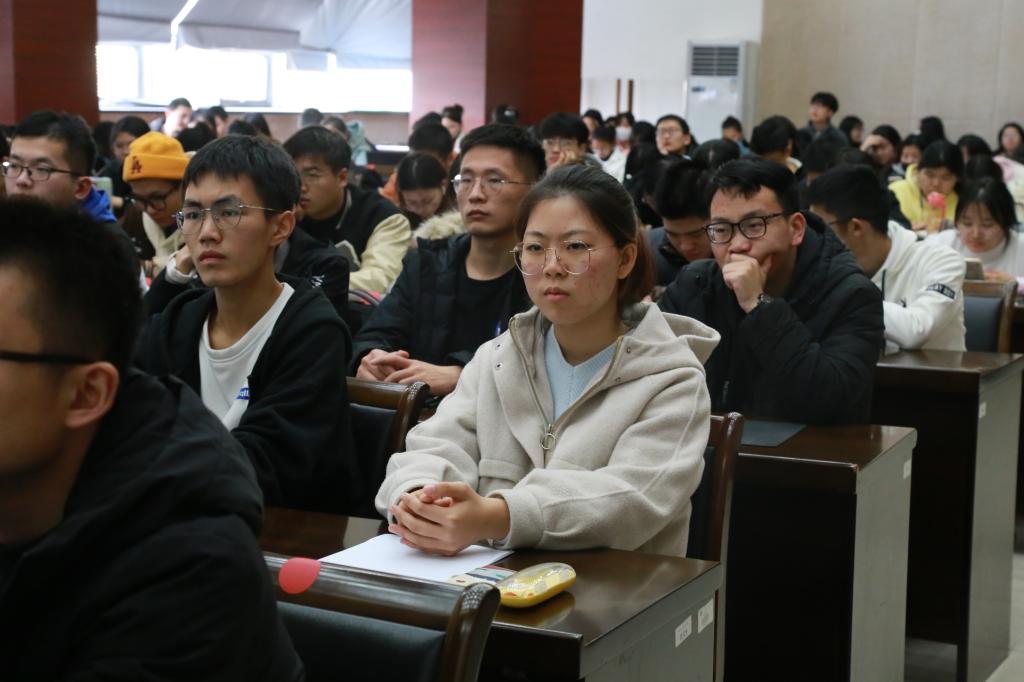 郭亚以“自身经历”为例向同学们分享了考研、读研生活的感受。他告诉同学们要学会享受人生的每一段历程,享受考研的过程,不急躁不放弃,一步一个脚印踏踏实实地坚持下去;享受读研的过程,不骄不躁,安安心心做好研究。正当青年时,奋斗是人生的底色,作为大学生应学会思考,敢于追求,不管结果如何,努力过便无需遗憾。