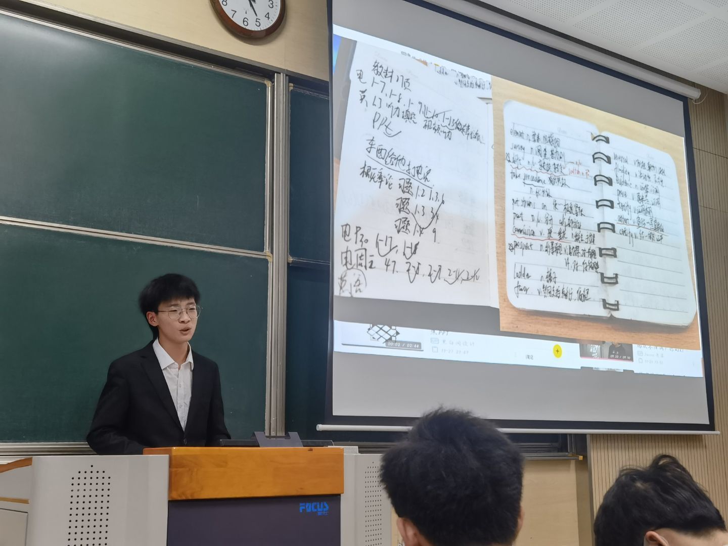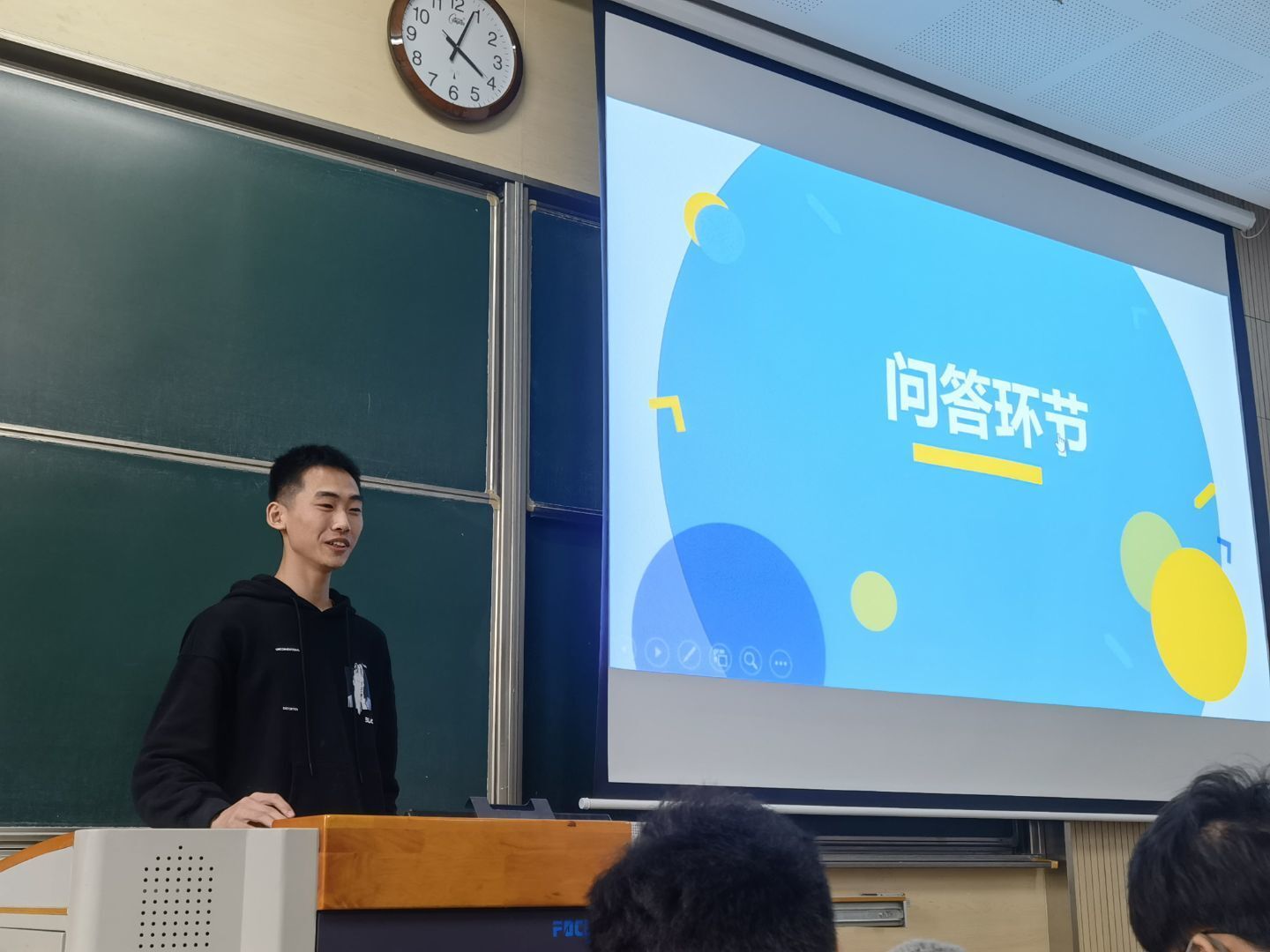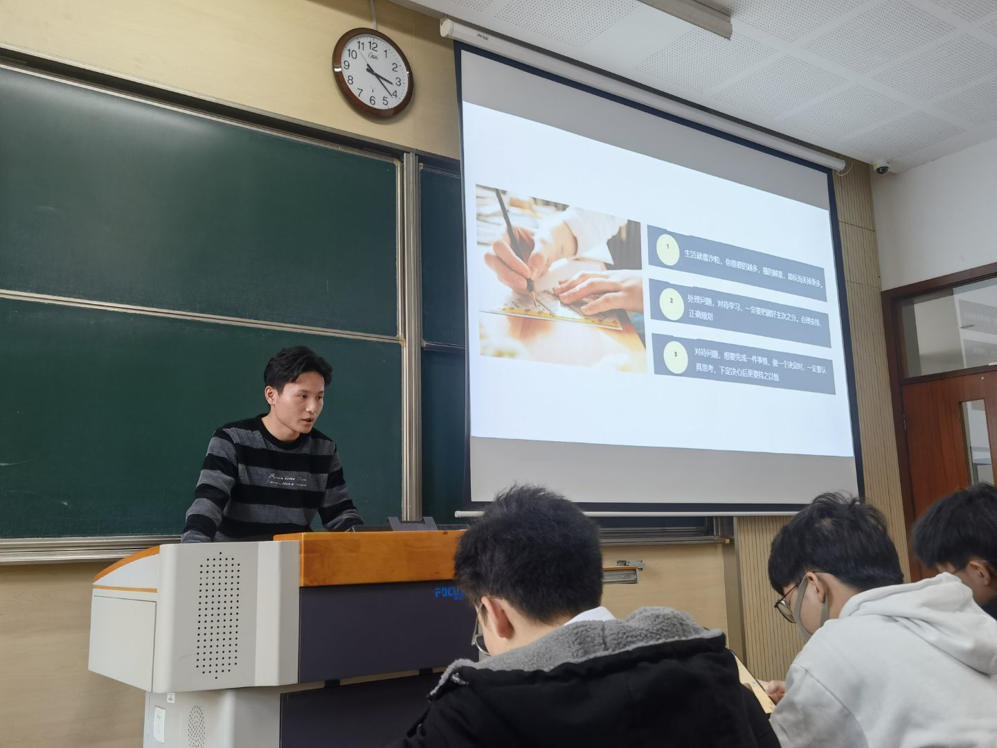 随后,学生会部门负责人佴宇飞、栗森茂、吉崇瑞分享了学习、工作等方面的经验与心得。佴宇飞从“学贵在精不在多”、做好学习规划、谨慎治学冷静处事、坚定理想信念四个方面进行了分享,并强调“大学生依然是一名学生,学习依然是我们的首要任务”。栗森茂以“内卷的研究”为主题作分享,他围绕内卷是什么、为什么会内卷、提高内卷的鲁棒性等内容进行讲解,鼓励大一同学积极开拓视野、树立更高追求,并指出“放平内卷的心态,要为了提高自己而努力,而不只是单单为了胜过别人”。吉崇瑞就初心、精力、试错、平衡四点结合自身经历分享了如何协调学习与工作,强调“不要互相攀比,不要总是抱怨”“平衡要结合自身实际去探索”,并给出了用小本子记事的建议。