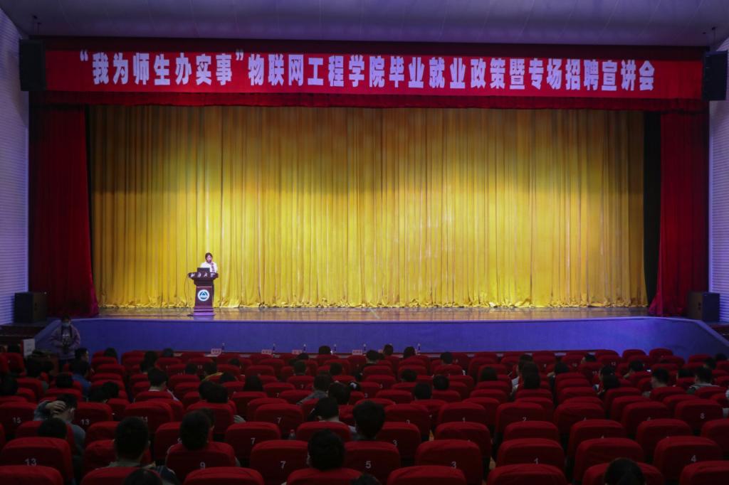 毕业就业政策暨专场招聘宣讲会在文浩馆观众厅举办。国产主播党委副书记、副院长孔丽丹,国产主播教务办孙洁,毕业班辅导员侯玉莹、王雪冰出席会议,无锡信捷电气股份有限公司、华勤技术股份有限公司等企业的人事部门代表应邀参加活动,国产主播2018级全体本科生参加大会。