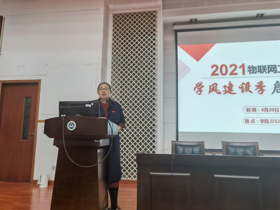 辅导员洪筱介绍“学风建设季”活动方案。她围绕强化营养“家常餐”、推出优质“自助餐”、创新打造“特色餐”以及用心调配“定制餐”四个模块,详细讲解了三级常态化学风巡查、就业升学经验分享会、学业预警生结对帮扶以及科研实验室开放日等系列学风建设活动。希望本次活动能够助力物联学子,思想上志存高远、行动上积极奋进、学业上学有所成。
