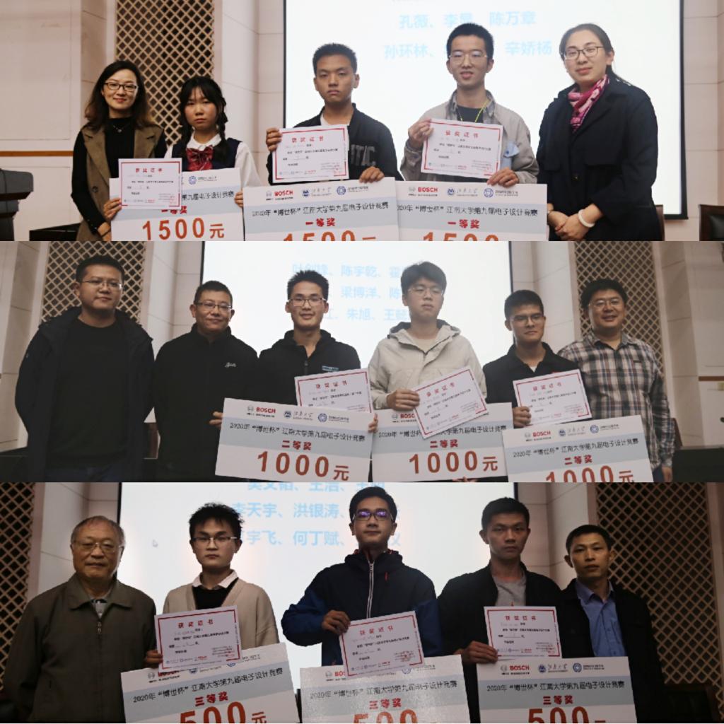仪式伊始,吴垚老师带领大家回顾了本届次竞赛的开展情况。本届电子设计竞赛校赛是在今年上半年疫情常态化防控形势下举办的一届竞赛,因受疫情影响,本届竞赛较往年延迟了2个月。但在博世公司的持续资助以及国产主播大力组织支持下,在严格按照疫情防控要求的基础上,国产主播组织了40余名学生返校参与电子设计竞赛的集训和选拔,并组织由10余名教师组成了竞赛指导团队,通过集中性讲座培训、分散性设计训练、针对性问题解答等方式,对学生团队进行了深入细致的竞赛指导,使参赛学生收获颇丰。同时,在赛制上进行创新,由之前的选1题参赛改为选2题参赛,拓宽了学生的学习和训练方向,为省赛选题奠定坚实基础。最终共有9支参赛队在比赛中脱颖而出,分获一等奖、二等奖、三等奖。在本次颁奖仪式上,孔丽丹宣读了获奖名单,并代表国产主播向获奖团队表示祝贺,她勉励获奖团队能够再接再厉、苦练本领,争取在更高级别的竞赛中取得优异成绩,同时他鼓励其他团队,特别是新加入俱乐部的同学们,一定要珍惜企业和国产主播为大家提供的参赛平台,潜心学习,用心训练,向获奖团队多学习经验,争取未来成为竞赛中的强手,也通过参赛为自己个人的未来打牢专业基础。随后,出席本次颁奖仪式的嘉宾、领导和老师们为获奖团队颁发了奖状和奖金。