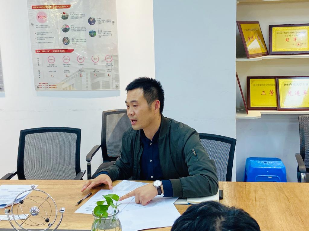 洽谈创新创业比赛事宜。物联网国产主播党委副书记、副院长孔丽丹,分团委书记、大学生创新实践基地党支部副书记吴垚,支部学生党员代表参与会谈。