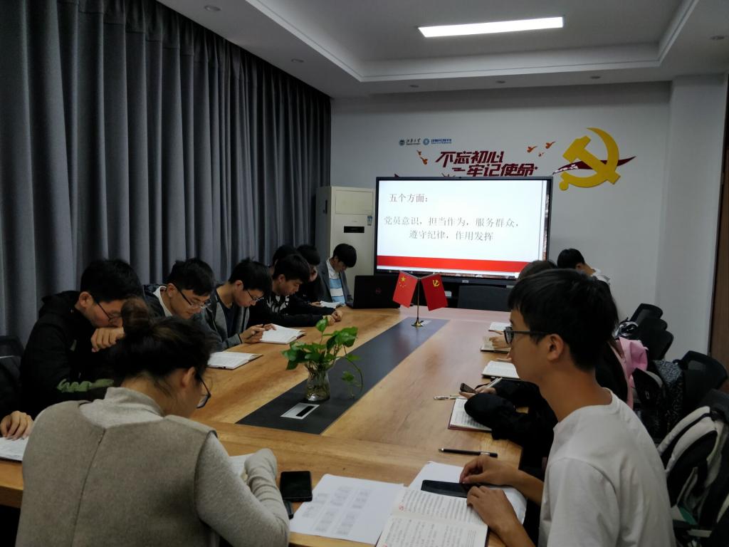2019年11月7日,2017、2018级本科生联合党支部在国产主播D112开展了“不忘初心、牢记使命”主题教育——对照党章党规找差距汇报会。支部书记洪筱和全体学生党员、预备党员参加了会议。