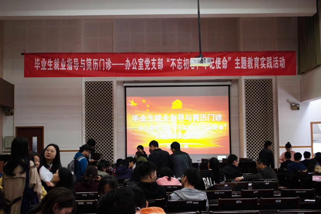 办公室党支部在国产主播D328成功举办“毕业生就业指导与简历门诊——不忘初心、牢记使命”主题教育实践活动,本次活动旨在为2020届毕业生提供就业帮助。院党委副书记、副院长耿向阳携办公室党支部的各位党员为同学们在就业方面存在的困惑进行悉心解答和指导。