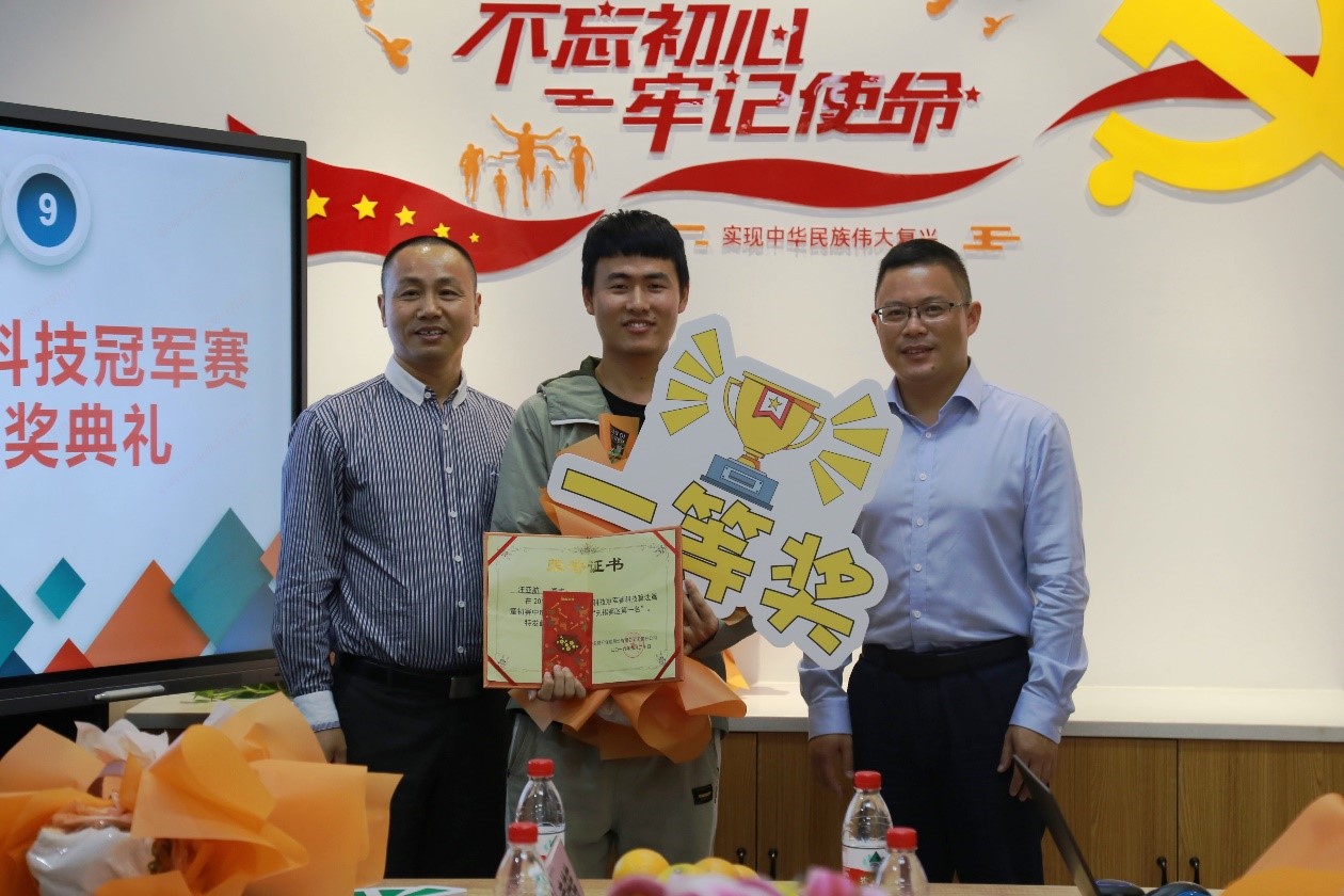 总经理王有东与院党委副书记、副院长耿向阳为一等奖代表队颁奖