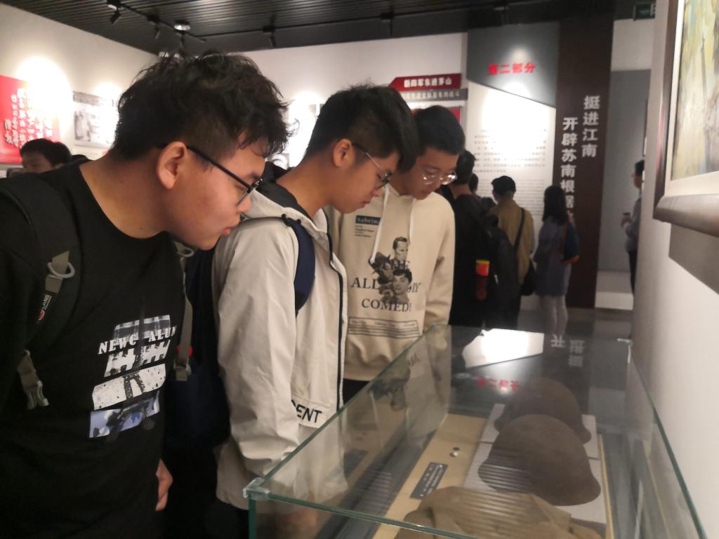 随后,在讲解员的带领下,参与活动的师生参观新四军革命纪念馆,瞻仰了馆后的烈士墓以及在四周陈列的飞机和炮弹。在参观过程中,大家相互交流,共同为新四军的艰苦奋斗和坚强战斗的精神所深深的打动。通过参观,使师生们更加深入的了解了抗战历史和革命先烈的严明纪律和不屈斗志,感受到战争时期的苦难,也更加珍视如今来之不易的美好生活。