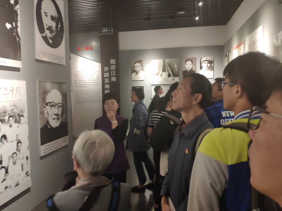 支部同学与老党员在新四军革命纪念馆内合影留念