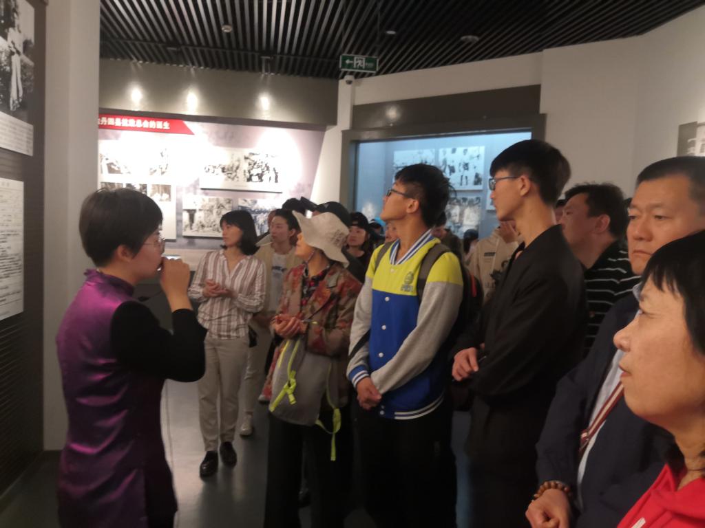 关工委赵曾贻老师跟同学们一起听讲解员讲解