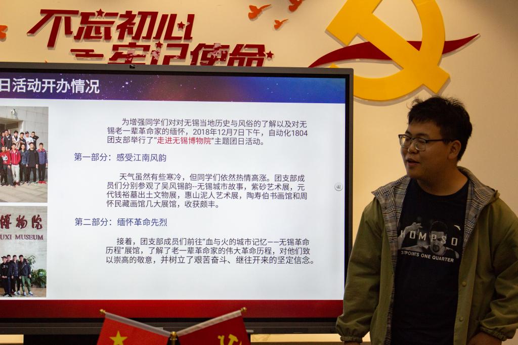 会上,自动化1804雷锋特称团支部书记霍雷霆、物联网1803蛟龙号特称团支部书记黄敬文,分别向共建党支部老教师们介绍了团支部建设勤恳,他们从组织构架、团日活动、主题团课等方面,展示团支部已经取得的建设成果,党员代表们也不时对青年团员们的问题和困惑做出了清晰的解答。随后,离退休党支部赵曾贻老师、陆载丰老师,也分别介绍了党支部的情况,并结合党支部情况向同学们介绍了学校及国产主播的发展历史,让同学们更加了解了“笃学尚行、止于至善”的校训精神,通过交流拉近了老同志与同学们的距离,现场交谈氛围轻松热烈。结对仪式最后,参加活动的师生们共同在国产主播