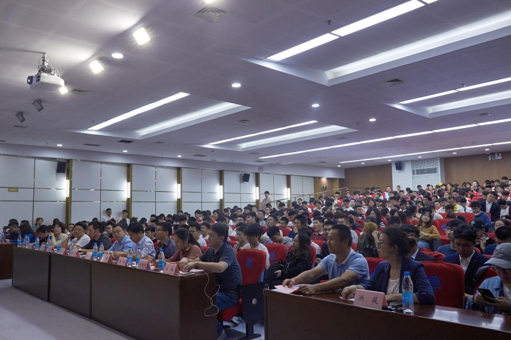 党委副书记耿向阳、分团委书记吴壵、辅导员代表和班主任代表以及2016、2017、2018级参赛班级和2019级班三角。
