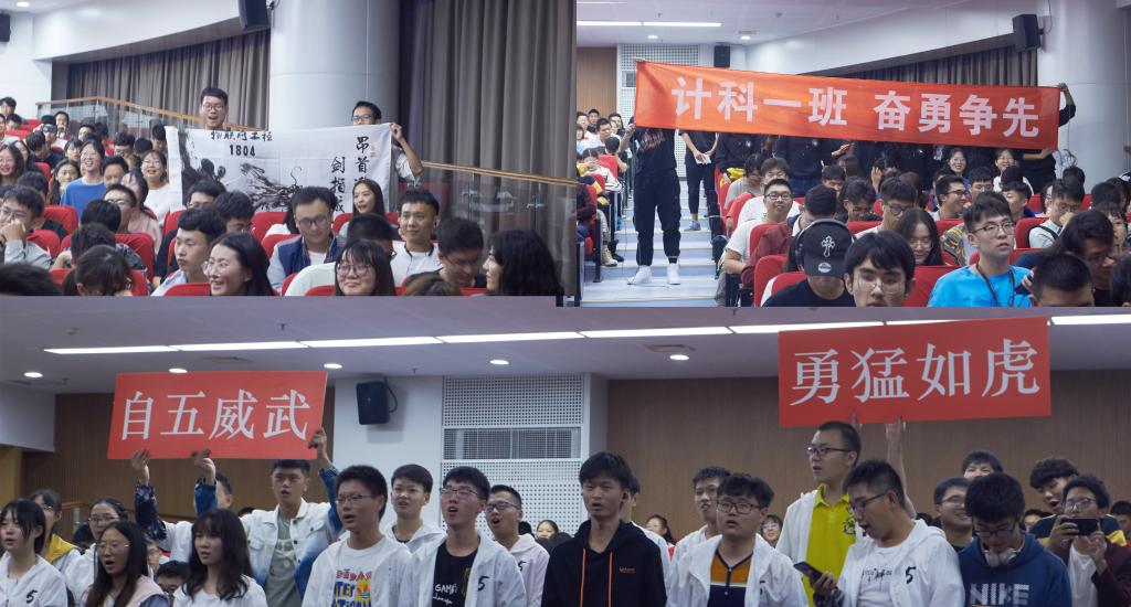 现场同学们积极活跃为台上同学加油助威