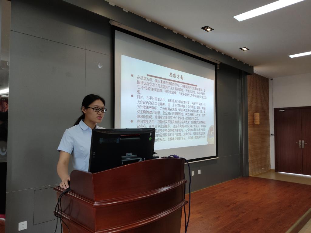 最后,耿书记希望大家要始终以党员的标准严格要求自己,要继续努力学习党的基本理论知识、专业知识和传统文化知识,不断提高自己的综合素质;要不断创新,勇于担当,背负起新时代赋予我们的历史使命。通过转正答辩,预备党员们再次重温了党章、党规及习近平总书记的重要讲话精神,认真回顾了一年来自己在思想上和行动上的转变和进步,进一步夯实了理论基础,提高了思想觉悟。