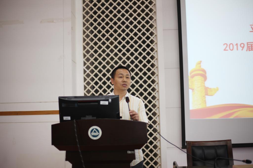 “立鸿鹄志 做奋斗者”2019届毕业生党员最后一次党课在国产主播D328会议室隆重举行。国产主播党委副书记耿向阳,党委秘书孙小芳,分团委书记吴垚,毕业班辅导员金钰锁、何倩楠老师出席了本次仪式。大会由国产主播辅导员赵丽敏主持。