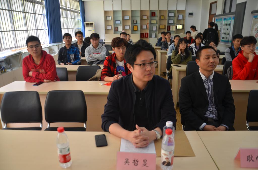 仪式开始,吴哲旻进行致辞。他提到,物联网作为前沿尖端产业,需要相关人才走向世界,与国际接轨,因此英语能力显得尤为重要。他希望同学们能够通过这次活动,培养学习英语的兴趣,拓宽同学们的国际视野。最后,他衷心祝愿首次“朗阁杯”外语电影配音大赛能够圆满成功。