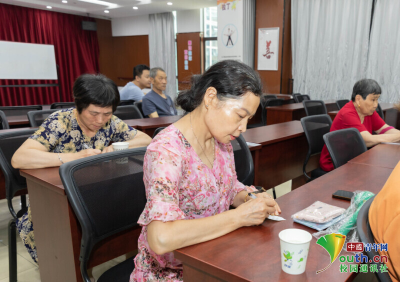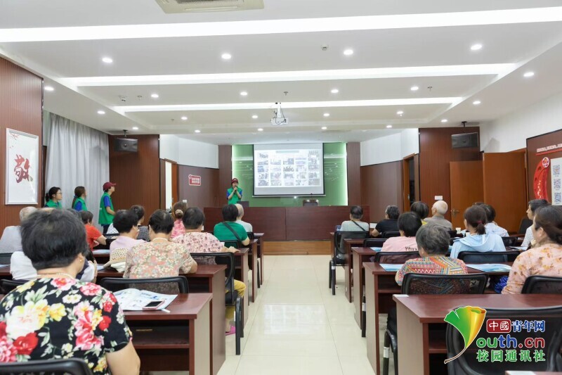 图为实践团成员刘雯丽为社区老人展开河道保护科普讲堂。孙涵 供图