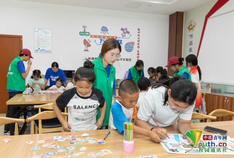图为实践团成员孙涵在“小河长”课堂上讲解环保知识。樊铭举 供图