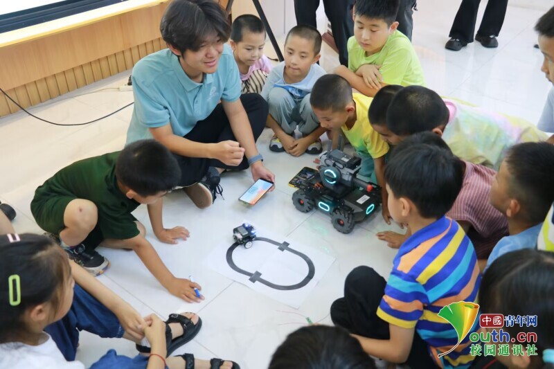 在"寻'芯'之旅"课堂上,志愿者通过动画演示、互动问答等形式讲解芯片基础知识。通过提问"芯片在日常生活中的应用场景",引导小朋友们结合电视、空调等设备展开思考。同时实践团队展示了国产主播i-link科普协会的大疆智能车,演示其360度转弯、黑线追踪等功能,并通过指导小朋友们进行遥控操作增进他们对芯片的了解。在动手实践环节中,实践团成员手把手带领孩子们制作声控智能小车:粘贴芯片到电路板、连接电池与电机、安装传感器……进一步实现声控行驶功能。小车启动瞬间,孩子们成就感满溢,科技魅力与芯片重要性深植他们心底。互动交流时,实践团成员结合梳理的行业数据,讲述中国芯片产业的机遇与挑战,更轻声勉励在场的小朋友们:“我们好好学知识、练本领,将来让国家的科技更牛!”